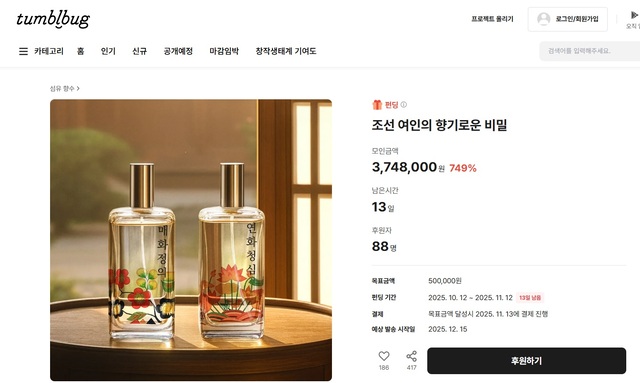 À̰æ¼÷ °üÀåÀº ¿À·£ ±â°£ ¿¬±¸¿Í Çã°¡ ÀýÂ÷¸¦ °ÅÃÄ Áö³ 12ÀÏ ¡®¿¬Èû½É ¡¤ ¸ÅÈÁ¤ÀÇ¡¯ ¸ÖƼÆÛǾ ÇÁ·ÎÁ§Æ® ¡®Á¶¼±¿©ÀÎÀÇ Çâ±â·Î¿î ºñ¹Ð¡¯À̶ó´Â À̸§À¸·Î ¿Â¶óÀÎ ¼Ò¼È Å©¶ó¿ìµå Ç÷§Æû ¡®ÅÒºí¹÷¡¯À» ÅëÇØ ¼±º¸¿´´Ù. ¿À´Â 11¿ù12ÀϱîÁö 500¸¸ ¿øÀ» ¸ñÇ¥¾×À¸·Î ÆÝµùÀÌ ÁøÇà ÁßÀ̸ç 30ÀÏ ±âÁØ 370¸¸ ¿øÀÌ ¸ð¾ÆÁ³°í ÈÄ¿øÀÚ¸¸ 90¸í¿¡ ´ÞÇÑ´Ù.