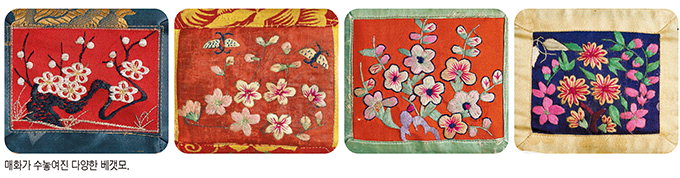 ¸ÅÈÀÚ¼ö´Â ±Ô¹æÀÇ ¿©ÀεéÀÇ ¼Õ³¡¿¡¼ ÇǾ º£°¹¸ð ¼ö¿¡µµ Á¾Á¾ º¸ÀδÙ. ÀÛÀº ²ÉÀÙµéÀ» ÇÑ ÀÙ ÇÑ ÀÙ ½Ç·Î ÇÇ¿ö³½ ±× Á¤¼º ¾Õ¿¡¼ °¡²û ¼Õ¸Å°¡ ¾ß¹«Áö°í ÄÚ³¡ÀÌ ´ÜÁ¤ÇÑ ¿©ÀÎÀ» ¶°¿Ã¸®±âµµ ÇÑ´Ù. ±×·± ¸ÅÈ²É °¡¿îµ¥ ¿ª»çÀûÀ¸·Î ±â·ÏµÇ¾î ÀüÇØÁö´Â ¾Æ¸§´Ù¿î ¸ÅȲɼö°¡ ÀÖ´Ù. 10Æø º´Ç³À¸·Î ³²¾ÆÀִµ¥ ƯÀÌÇϰԵµ ¼öÀÇ º»(Üâ)À» ±×¸° ÀÛ°¡°¡ ¹àÇôÁø ÀÛǰÀÌ´Ù. Á¶¼±ÈıâÀÇ È°¡ ¾ç±âÈÆ(åÅÐñý¹, 1843~1919 ÀüÈÄ)ÀÇ ±×¸²À» ÀÚ¼ö ¹Ø±×¸²À¸·Î ÇØ¼ ¼ö³õ¾Ò´Ù. ±× ¹Ø±×¸² À§¿¡ ¿ì¸®³ª¶ó¿¡¼ °¡Àå ÈǸ¢ÇÑ ÀÚ¼ö ¼Ø¾¾¸¦ »Ë³»´Â Æò¾È³²µµ ¾ÈÁÖ Áö¹æÀÇ ³²ÀÚ ÀÚ¼öÀåÀÌ ¼ö³õ¾Æ ¿Ï¼ºÇÑ º´Ç³ ÀÛǰÀÌ´Ù. ±×·¡¼ ÀÌ º´Ç³À» ¸¸³µÀ» ¶§ ±× À¯¸íÇÑ ÀÚ¼ö¼Ø¾¾¸¦ ½ÇÁ¦ º¼ ¼ö ÀÖ´Ù´Â °Í°ú ÇÑ ÀÛ°¡ÀÇ ¹Ø±×¸²À¸·Î 3ƲÀÇ º´Ç³ÀÌ ¼ö³õ¾ÆÁ³´Ù´Â »ç½Ç¿¡ Èï¹Ì°¡ ´õÇØÁ³´Ù. ºÏÇÑ¿¡¼´Â ¾ç±âÈÆÀÌ ±×¸° ¾à 3mÀÇ ¡®ºÓÀº ¸ÅÈ¡¯ ¼ö¹¬È 10Æø º´Ç³ÀÌ ±¹º¸·Î ÁöÁ¤µÇ¾î ÀÖ´Ù.